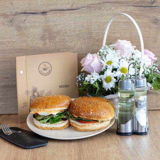 burger zemičke (2 kom), pileća prsa, topljeni sir, salata mix, krastavac, paradajz, burger sos